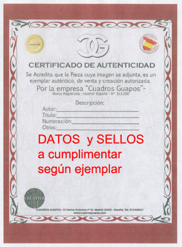 Ejemplar FIRMADO y CERTIFICADO al dorso, con Sello de acreditación de la Sala Exposición.